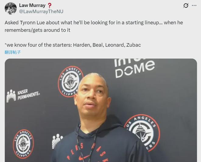 快船首發(fā)確定4人:哈登小卡比爾祖巴茨 剩一席或科林斯瓊斯2選1